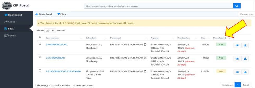 The system notates the files that have been previously downloaded by putting a yes in the downloaded field after the screen is refreshed or when you log in next time.